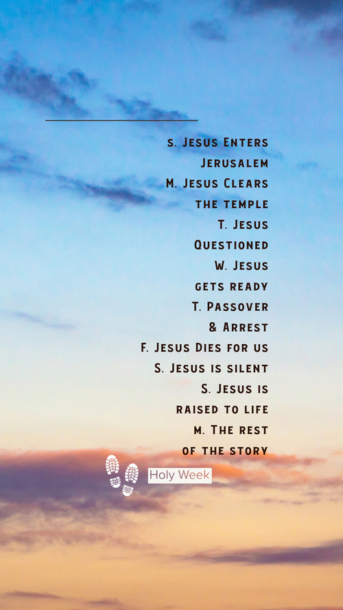 *If you have been participating in our 40 days Lenten journey, the Holy Week devotional is already included in those materials.