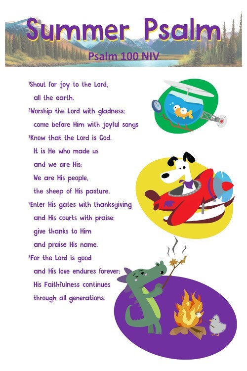 PreK/K and Elementary will practice Psalm 100 throughout the summer!